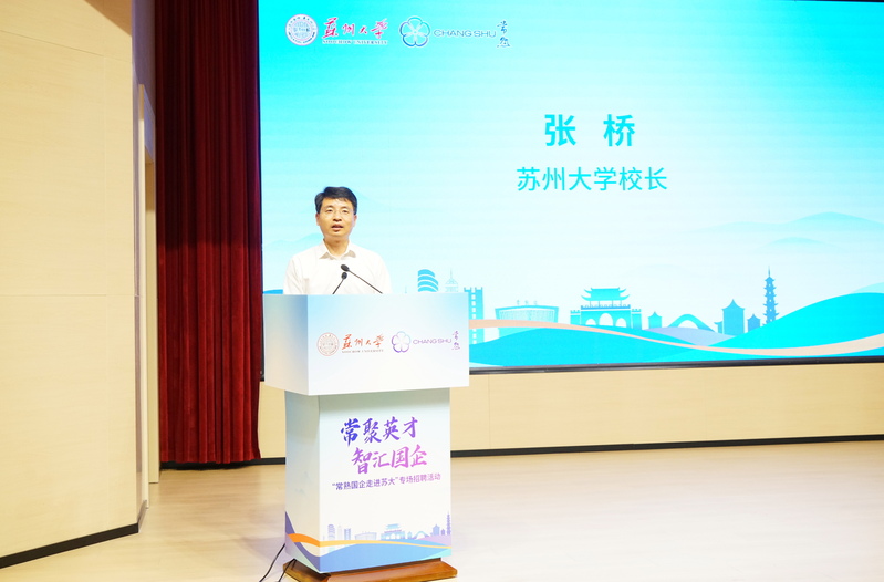 张桥对常熟市属国企组团进校招聘表示欢迎和感谢。他指出,苏州大学与常熟市的合作持续深化,双方在科技创新、产业转型、人才培养等多个领域取得了扎实成效。此次专场招聘活动提供了优质岗位,充分体现了常熟市政府对人才工作的高度重视以及对苏大学子的认可。他希望同学们抓住应聘机会,就在苏州、留在苏州,更好地服务地方经济社会发展。