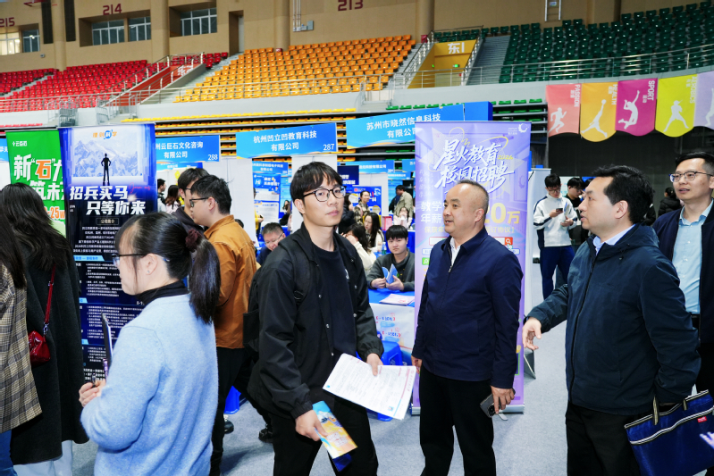 查佐明带领相关职能部门与学院(部)负责人现场调研指导,与用人单位代表深入交流人才需求、校企合作等事宜,与求职毕业生亲切交谈,了解求职进展与职业规划,勉励学子坚定信心、抢抓机遇,在双向选择中找到心仪的发展平台。